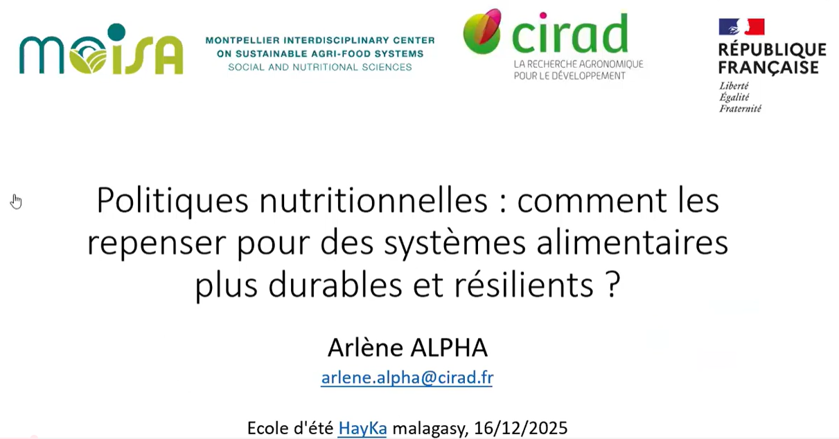 Webinaire HayKa proposé par Arlène Alpha, chercheuse au CIRAD Montpellier, sur le thème "politiques ...